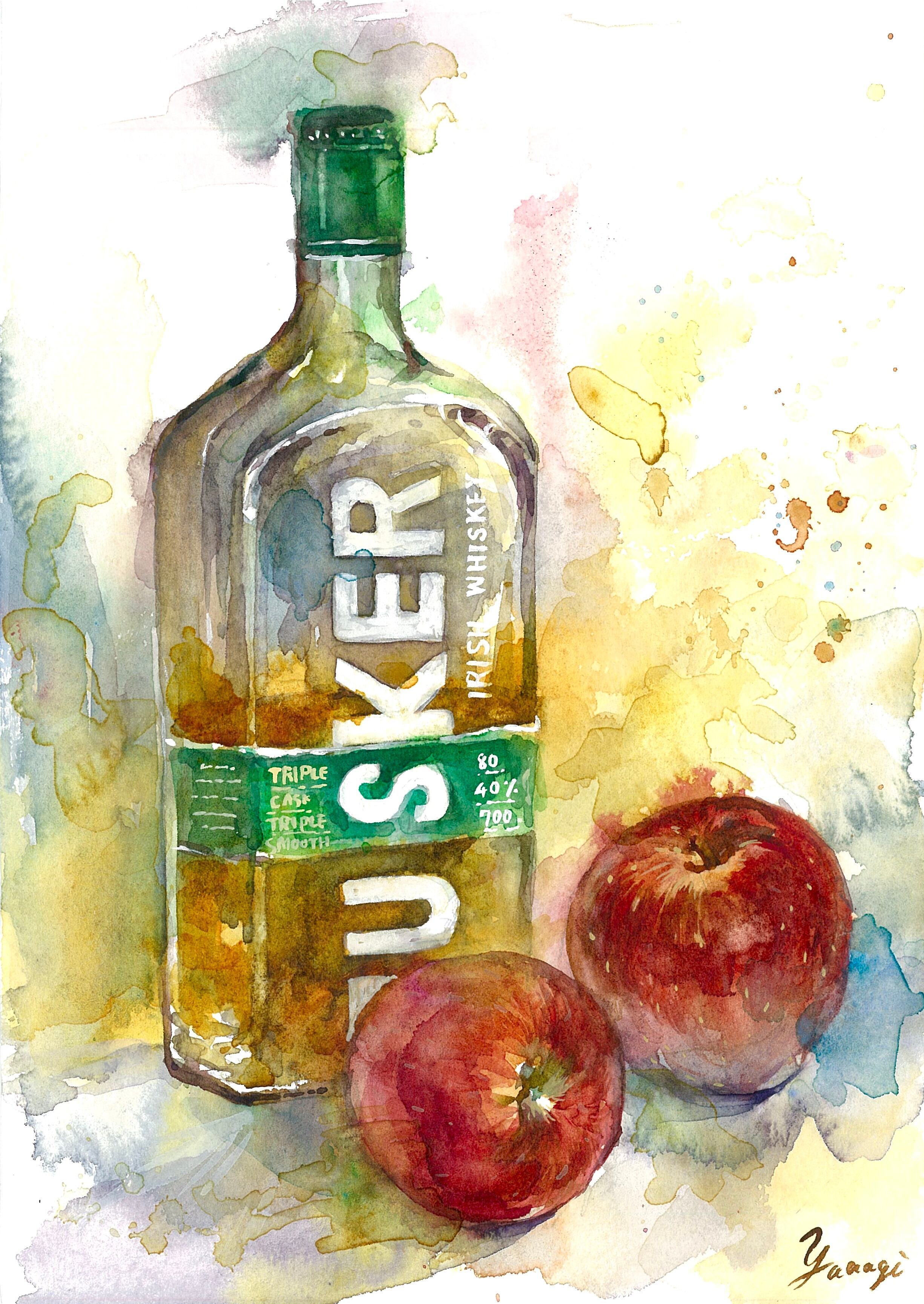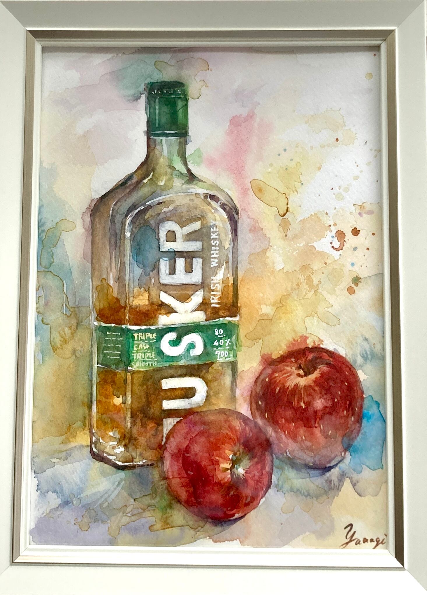 #ウイスキー#BUSKER#バスカー#果物#フルーツ#りんご#林檎#透明水彩 #水彩 #水彩画 #イラスト #アート #art #アナログ #インテリア #飾り #鑑賞 #美術 #芸術 #作品 #ギャラリー #watercolor