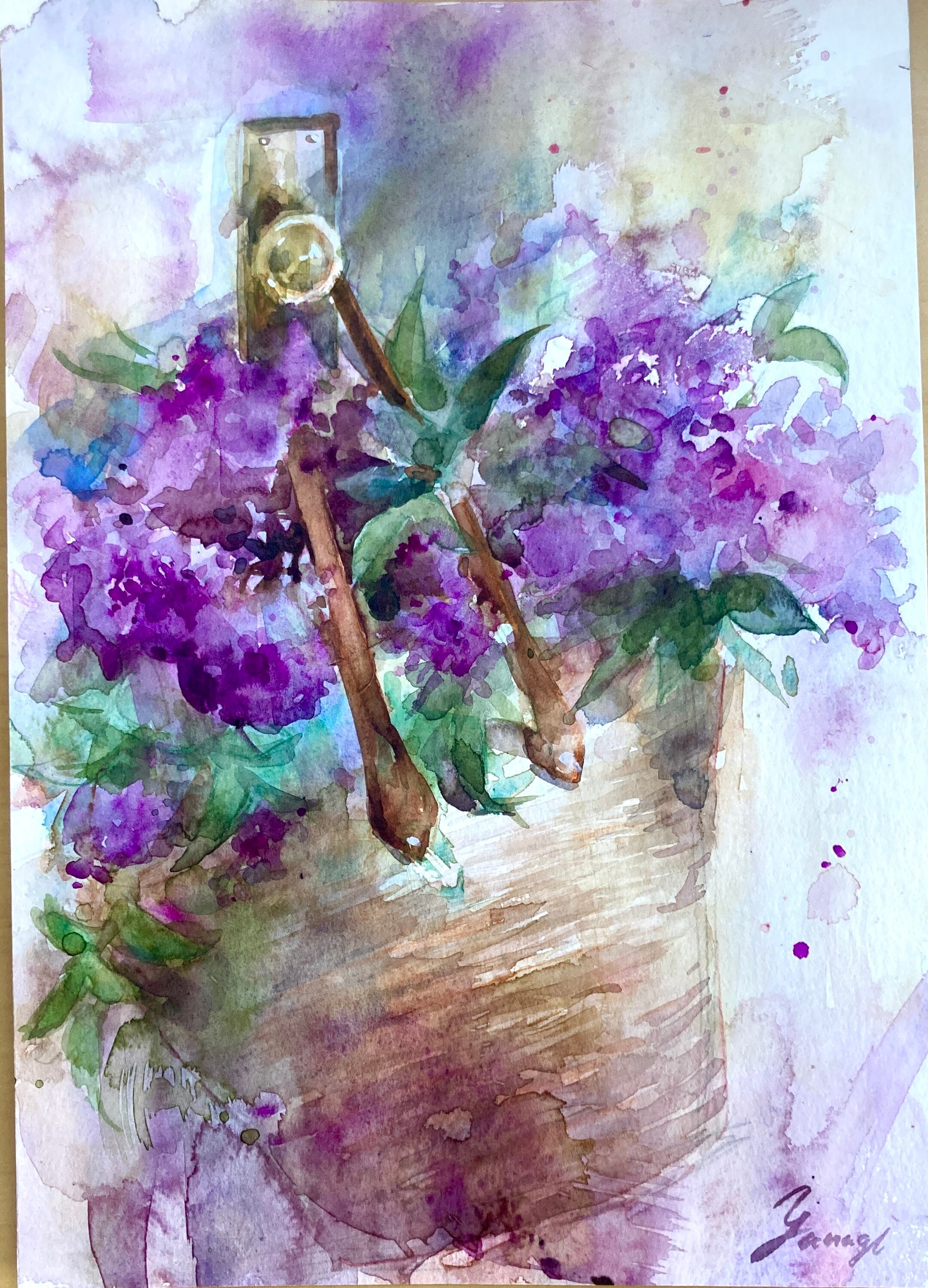 #紫陽花#あじさい#アジサイ#バスケット#ドア#植物#花#透明水彩 #水彩 #水彩画 #イラスト #アート #art #アナログ #インテリア #飾り #鑑賞 #美術 #芸術 #作品 #ギャラリー #watercolor