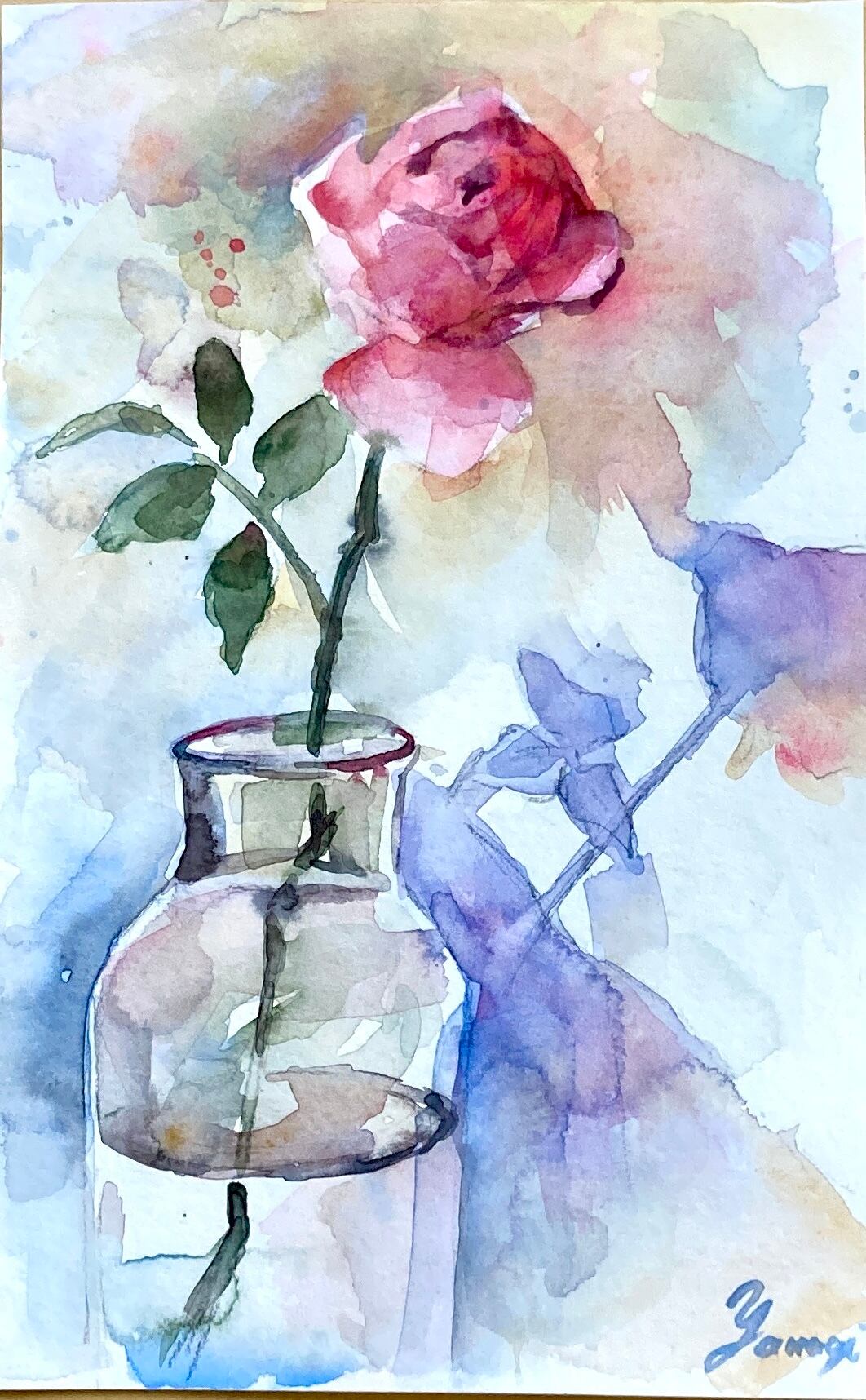 #薔薇#ばら#バラ#花瓶#植物#透明水彩 #水彩 #水彩画 #イラスト #アート #art #アナログ #インテリア #飾り #鑑賞 #美術 #芸術 #作品 #ギャラリー #watercolor
