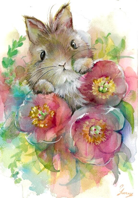 #うさぎ#兎#ネザーランドドワーフ#芍薬#花 #水彩 #水彩画 #イラスト #アート #art #アナログ #インテリア #飾り #鑑賞 #美術 #芸術 #作品 #ギャラリー #watercolor
