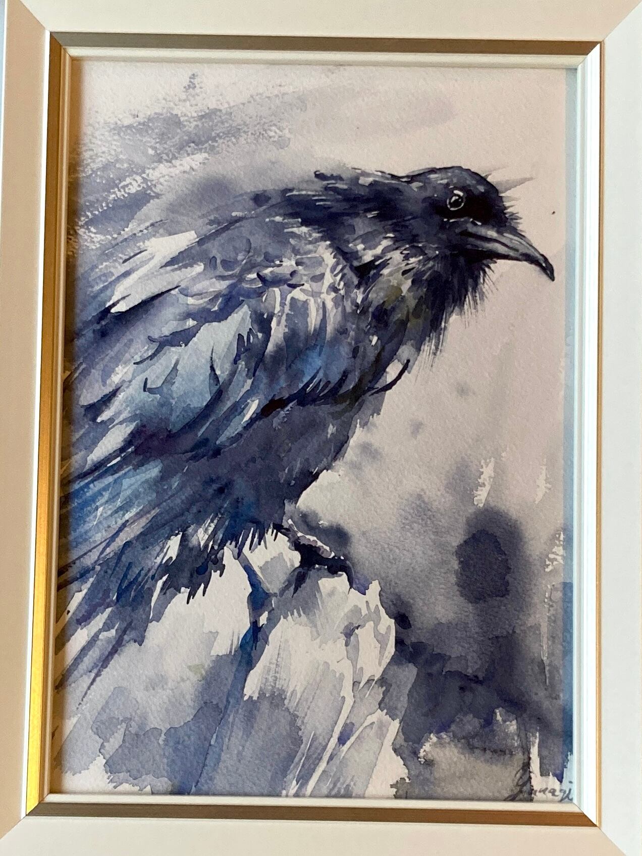 #鴉#烏#鳥#嘴#羽毛#崖 #水彩 #水彩画 #イラスト #アート #art #アナログ #インテリア #飾り #鑑賞 #美術 #芸術 #作品 #ギャラリー #watercolor