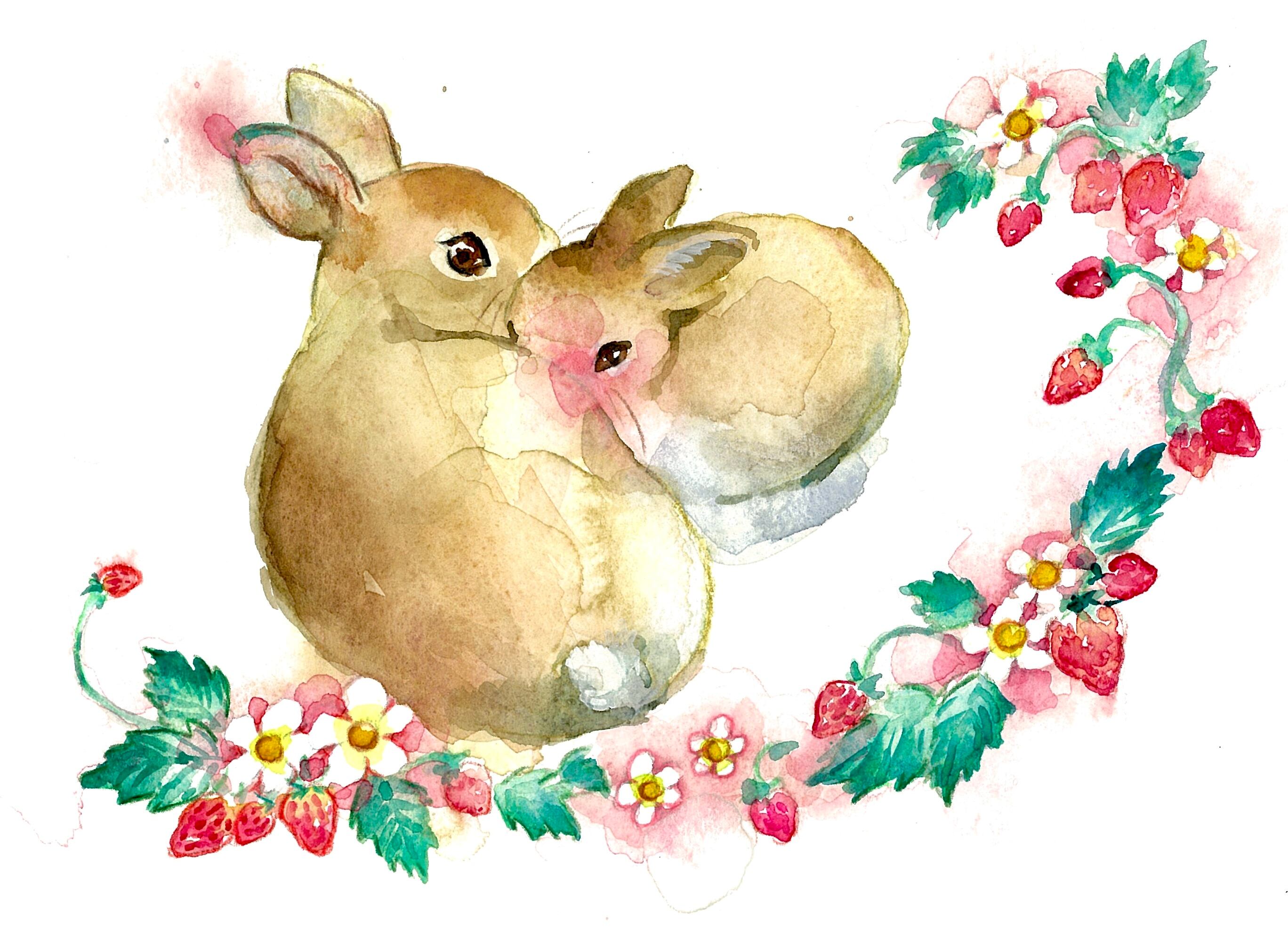 #うさぎ#兎#ウサギ#ネザーランドドワーフ#苺#いちご#イチゴ#花#透明水彩 #水彩 #水彩画 #イラスト #アート #art #アナログ #インテリア #飾り #鑑賞 #美術 #芸術 #作品 #ギャラリー #watercolor