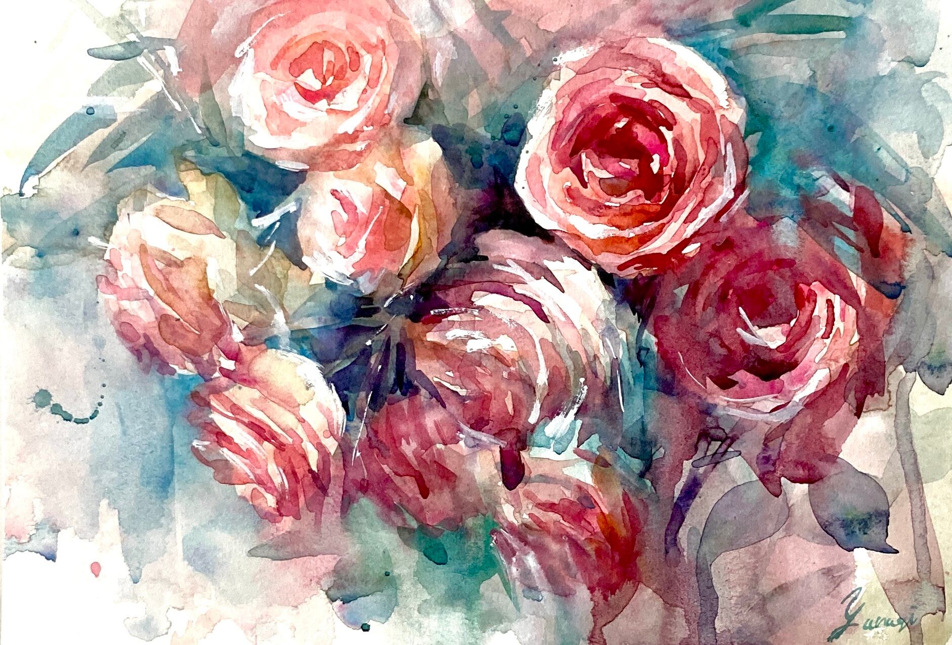 #薔薇#ばら#バラ#静物#透明水彩 #水彩 #水彩画 #イラスト #アート #art #アナログ #インテリア #飾り #鑑賞 #美術 #芸術 #作品 #ギャラリー #watercolor
