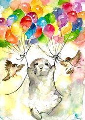 #小鳥#雀#うさぎ#兎#すずめ#スズメ#風船#バルーン#透明水彩 #水彩 #水彩画 #イラスト #アート #art #アナログ #インテリア #飾り #鑑賞 #美術 #芸術 #作品 #ギャラリー #watercolor