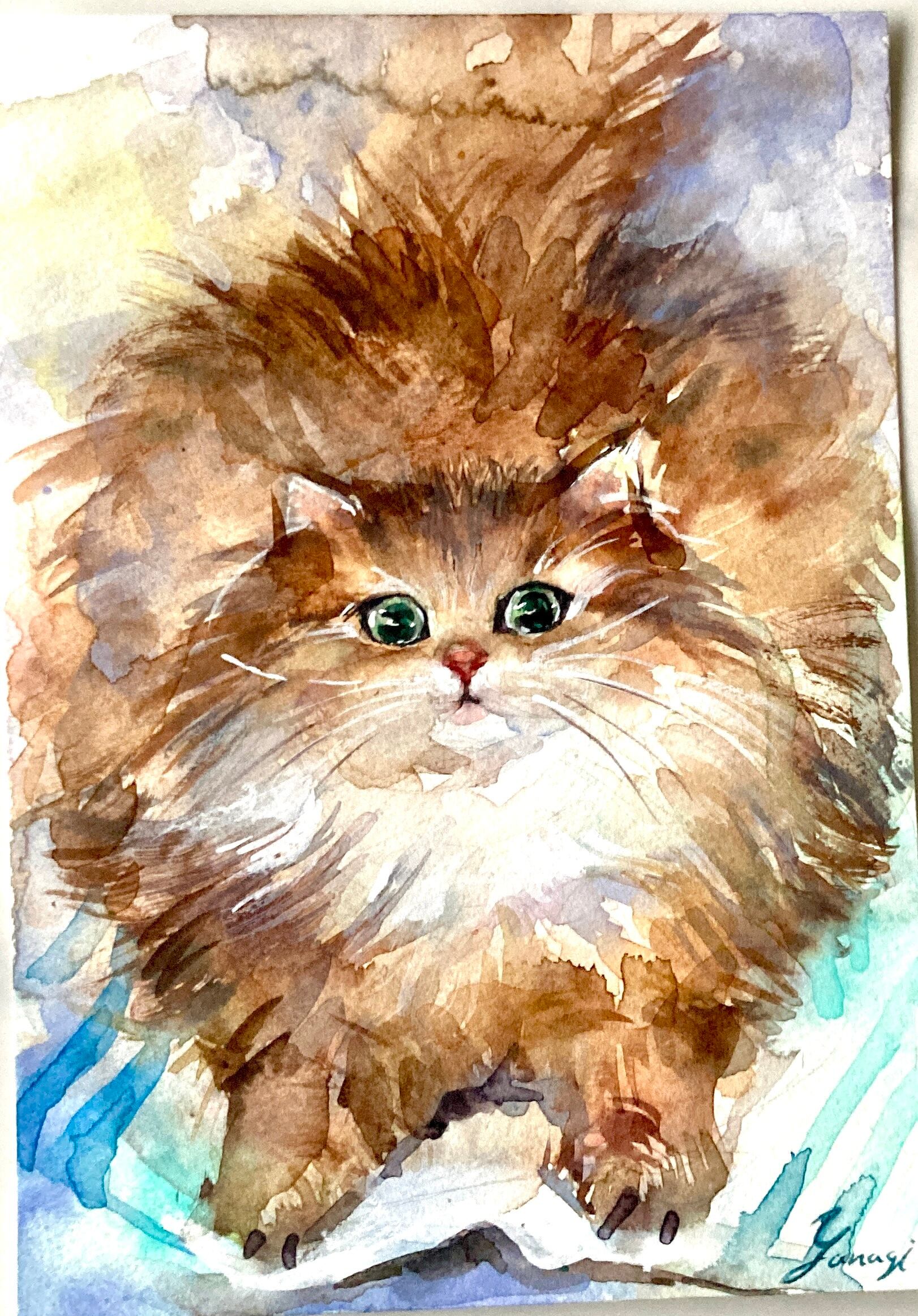 #猫#長毛猫#ペルシャ#ペルシャ猫#透明水彩 #水彩 #水彩画 #イラスト #アート #art #アナログ #インテリア #飾り #鑑賞 #美術 #芸術 #作品 #ギャラリー #watercolor