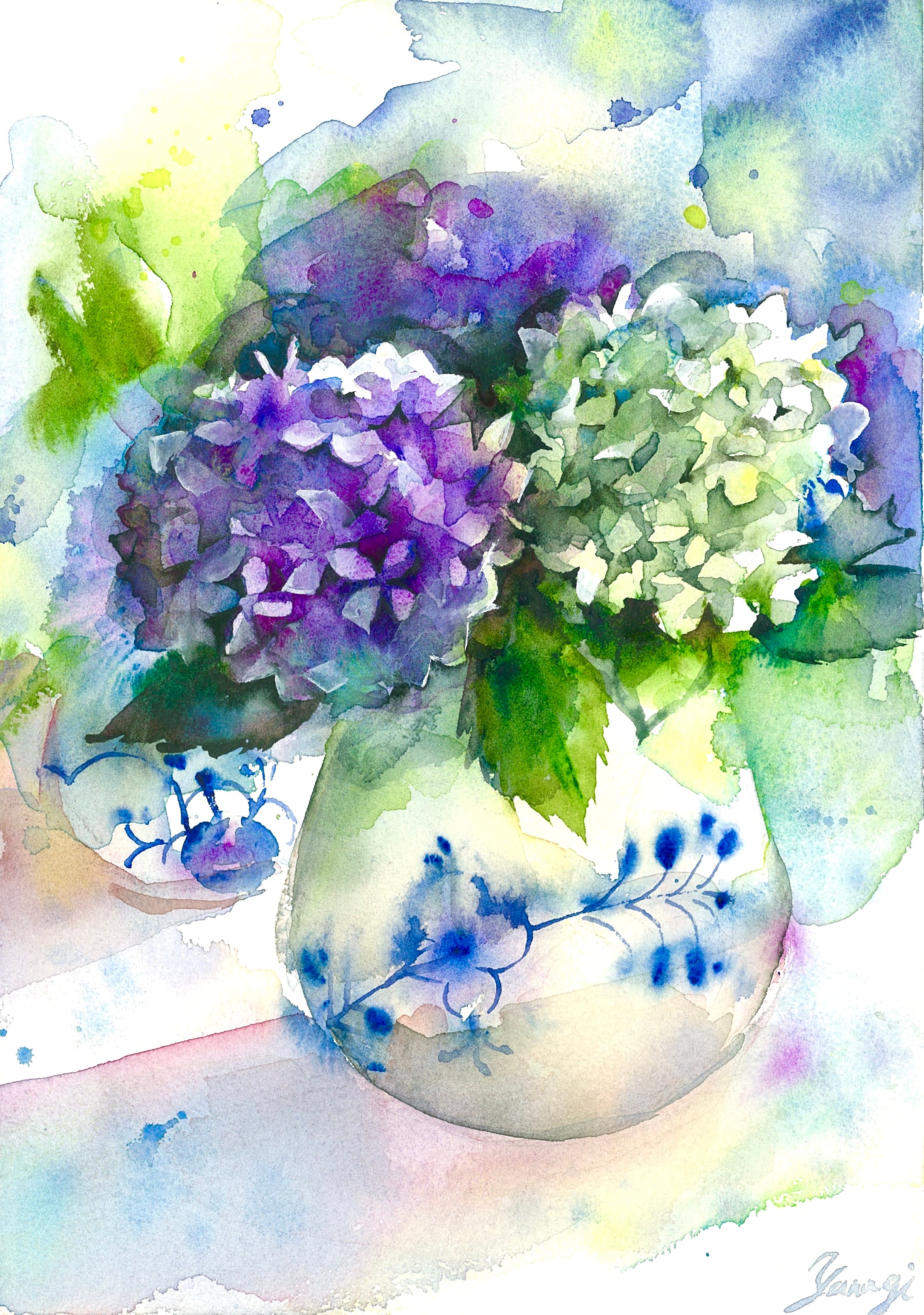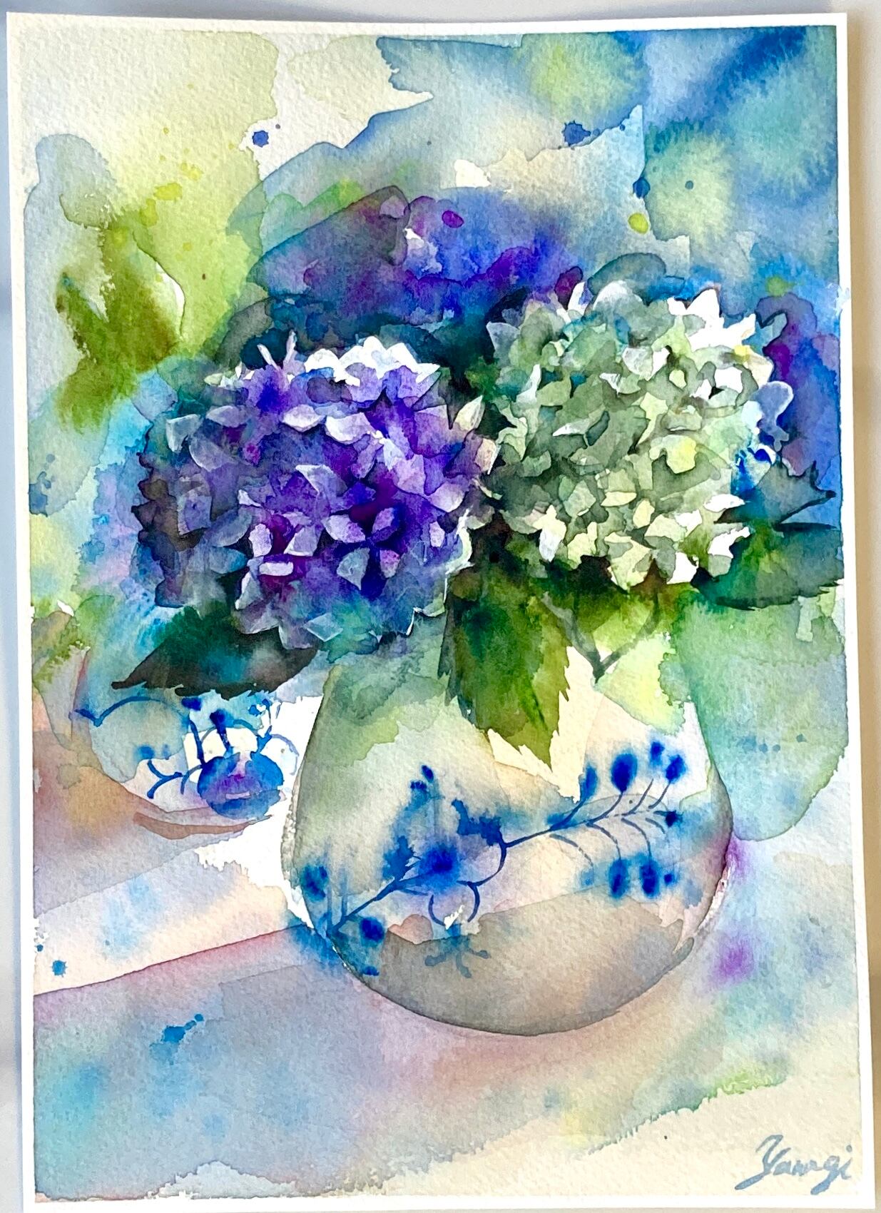 #静物#紫陽花#花#花瓶#透明水彩 #水彩 #水彩画 #イラスト #アート #art #アナログ #インテリア #飾り #鑑賞 #美術 #芸術 #作品 #ギャラリー #watercolor