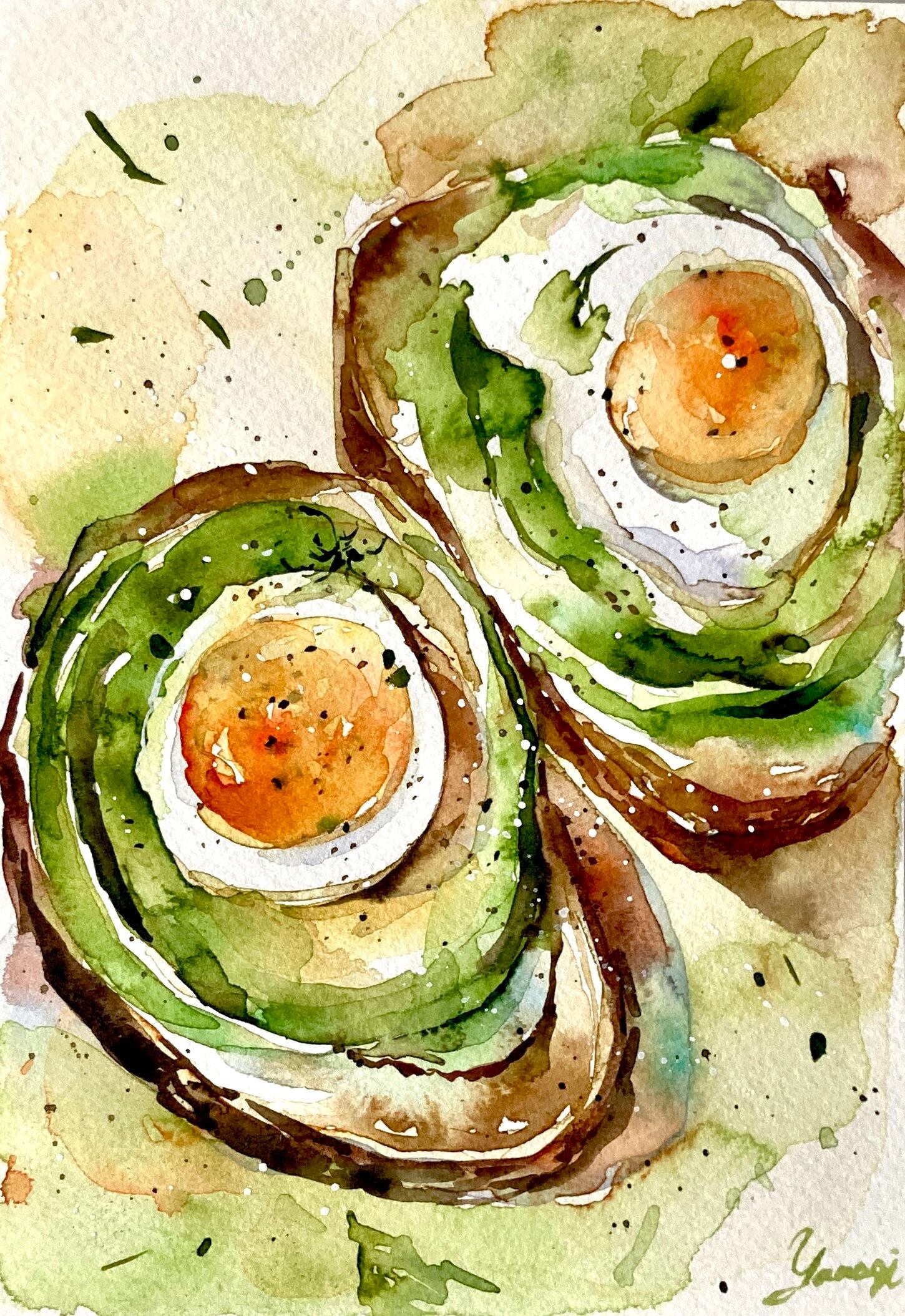 #バゲット#パン#アボカド#卵#目玉焼き#透明水彩 #水彩 #水彩画 #イラスト #アート #art #アナログ #インテリア #飾り #鑑賞 #美術 #芸術 #作品 #ギャラリー #watercolor