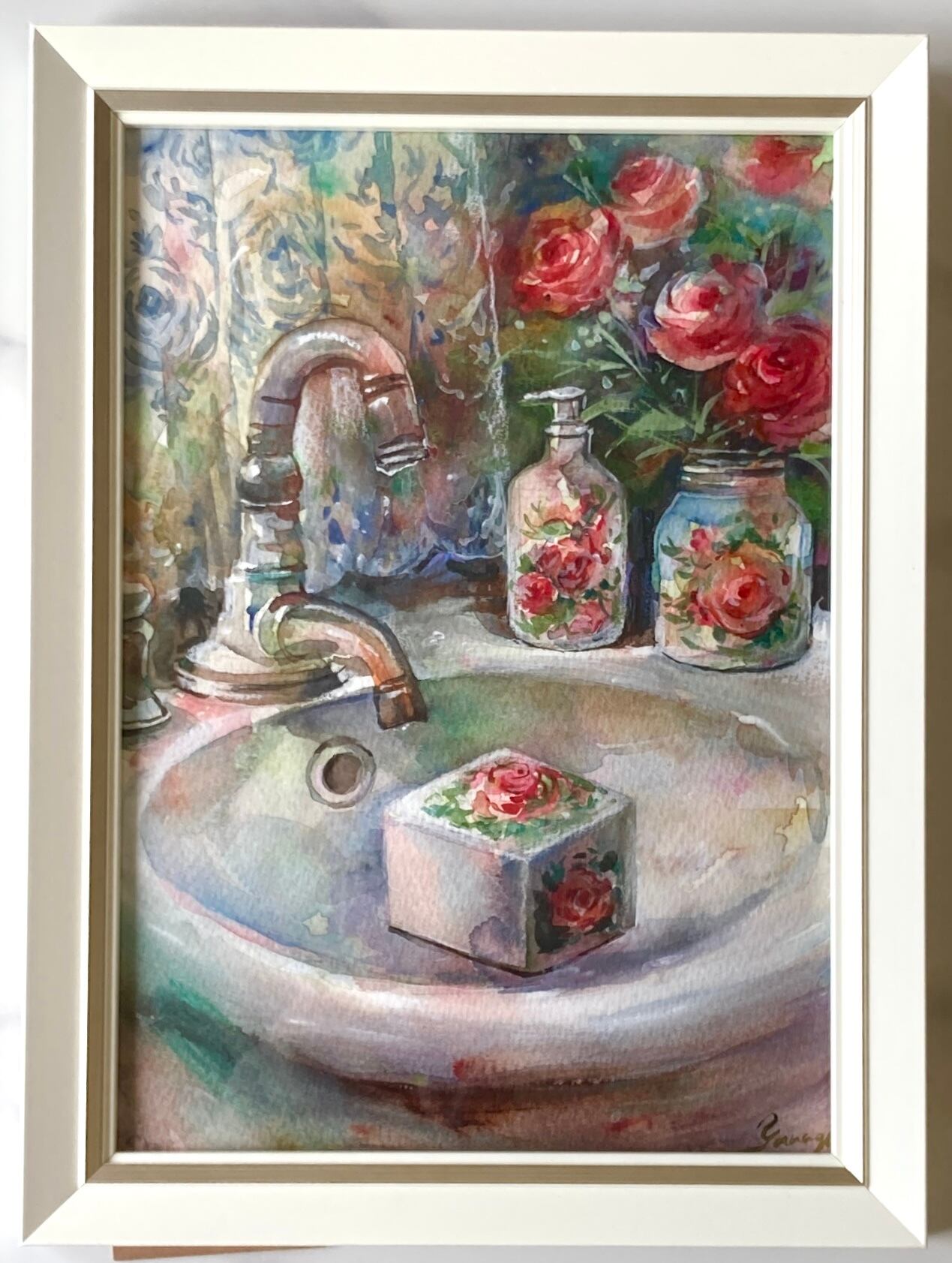 水彩画 原画 薔薇の石鹸