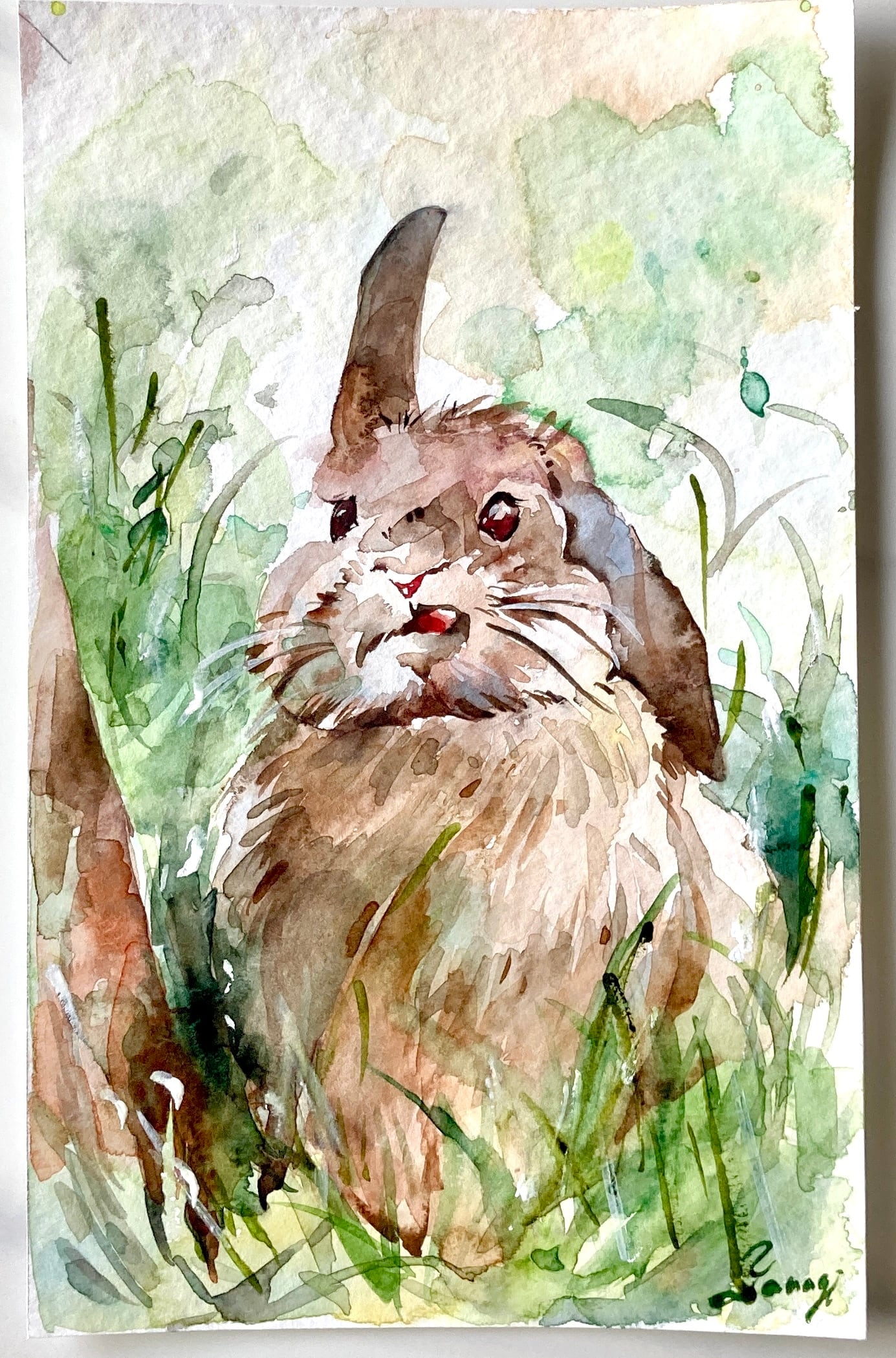 水彩画 原画 ぺろっと兎