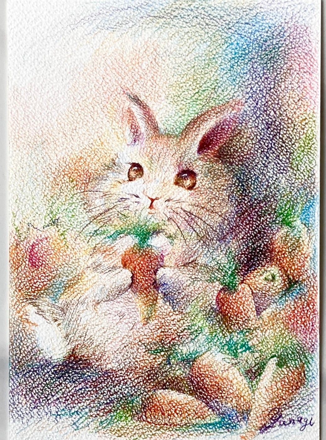 #色鉛筆#兎#うさぎ#人参#ニンジン#にんじん#イラスト #アート #art #アナログ #インテリア #飾り #鑑賞 #美術 #芸術 #作品 #ギャラリー #watercolor