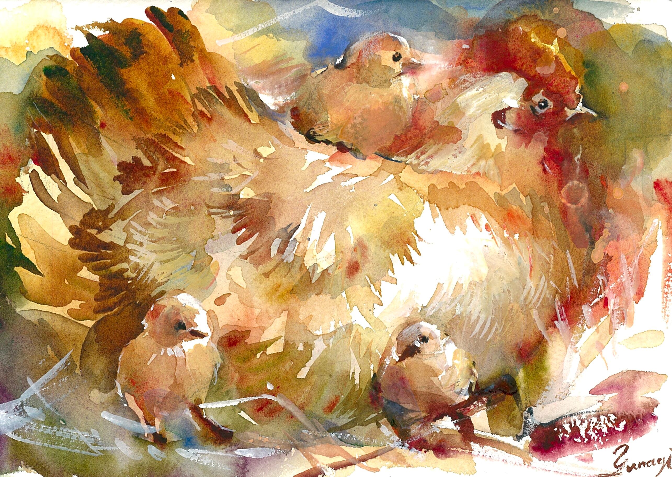 #鶏#にわとり#ヒヨコ#雛#鳥#透明水彩 #水彩 #水彩画 #イラスト #アート #art #アナログ #インテリア #飾り #鑑賞 #美術 #芸術 #作品 #ギャラリー #watercolor