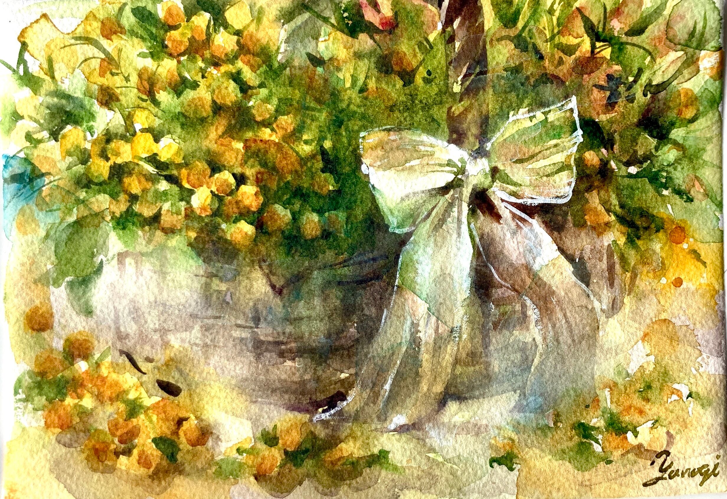 #花束#リボン#籠#花#植物#透明水彩 #水彩 #水彩画 #イラスト #アート #art #アナログ #インテリア #飾り #鑑賞 #美術 #芸術 #作品 #ギャラリー #watercolor